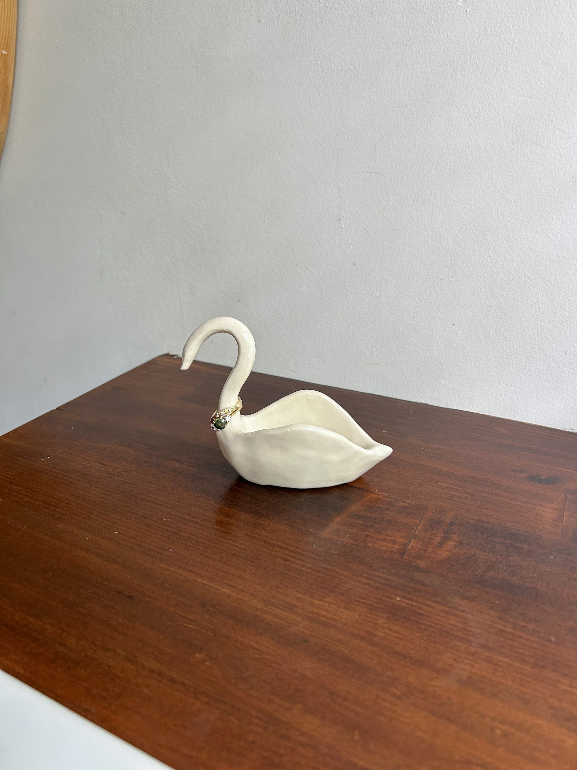 A charming little ring holder to hold your most precious treasures. inspired by an old watercolor I found in a second hand store of two swans floating up to a window as a woman peers out