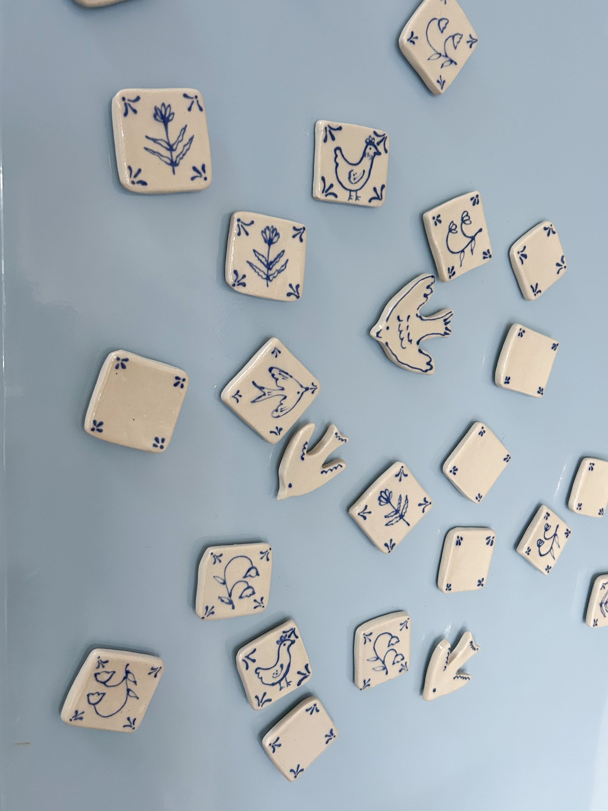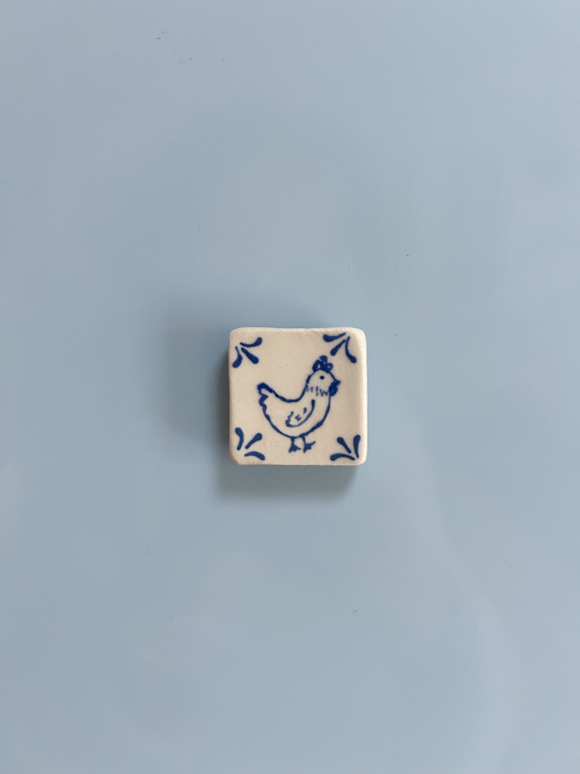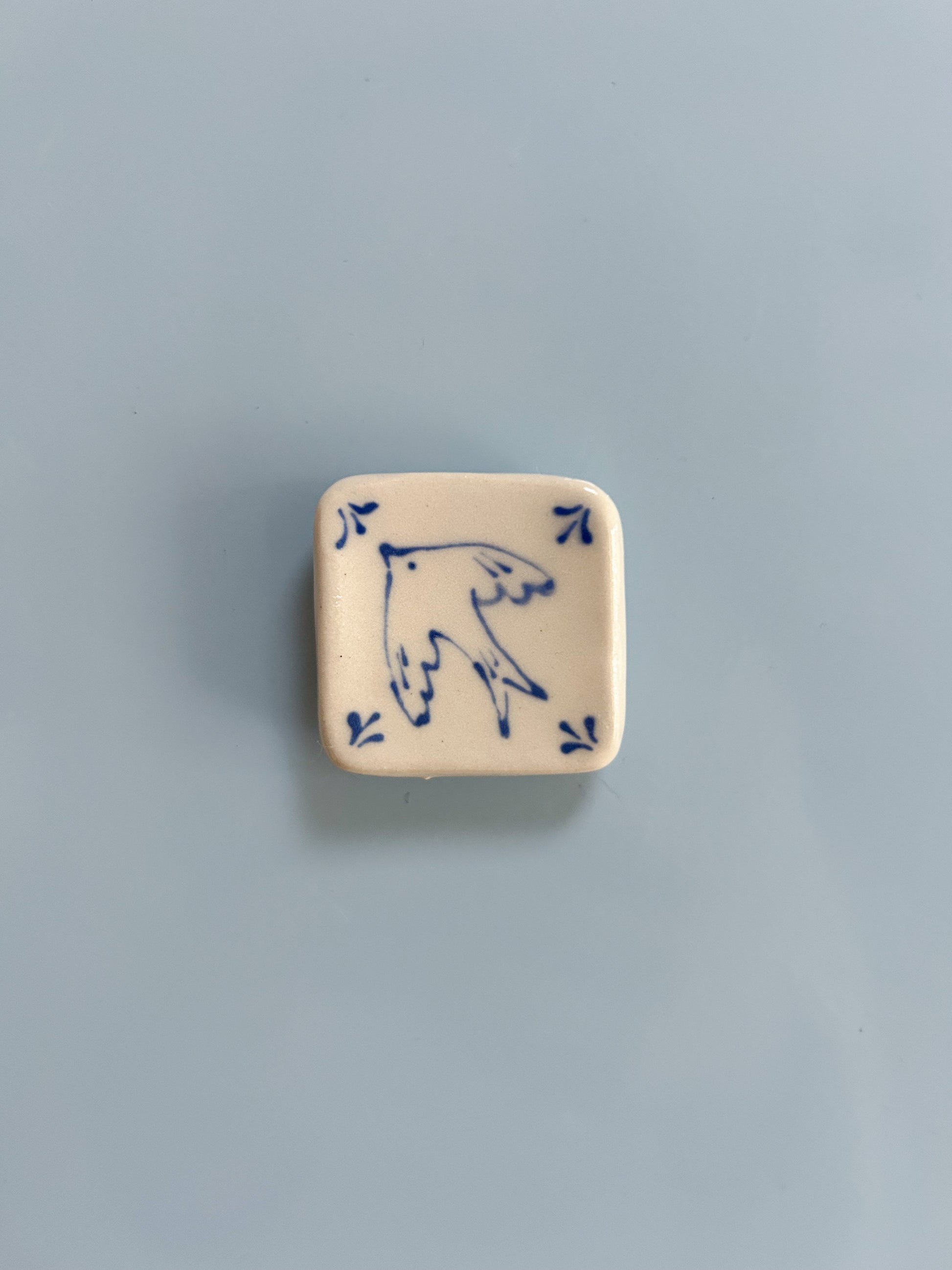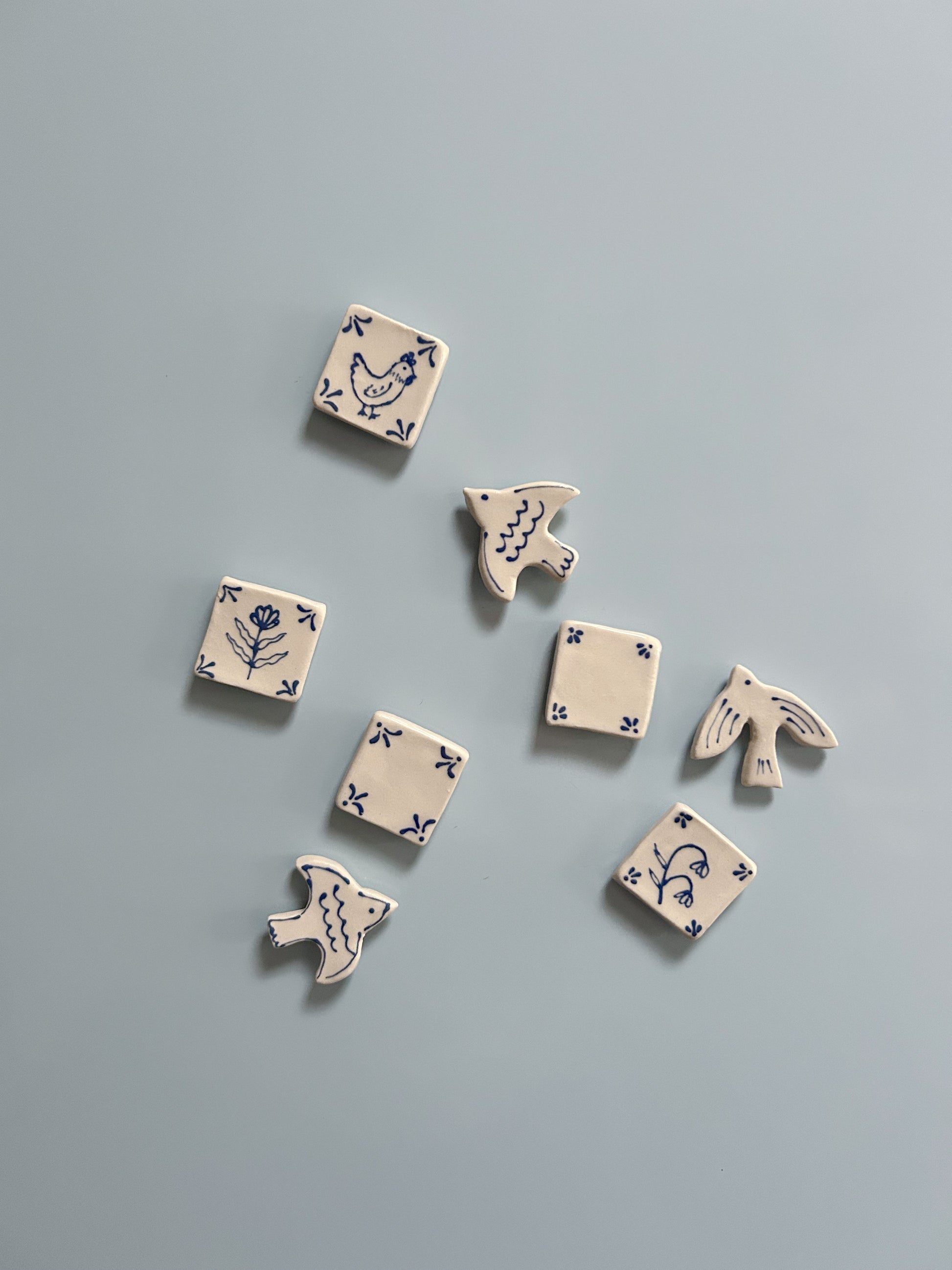Inspired by vintage delft tiles these magnets depict cobalt floral and bird motifs to bring a little whimsy to your home. Strong magnets on the back to hold all your most precious photos and notes.